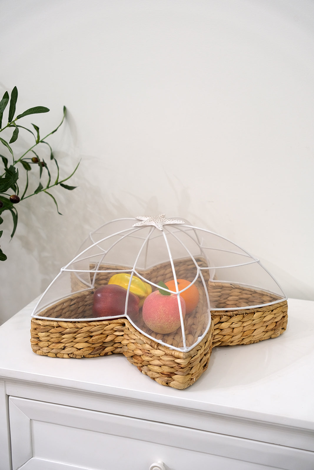 Handwoven Water Hyacinth Star Tray with Mesh Food Cover